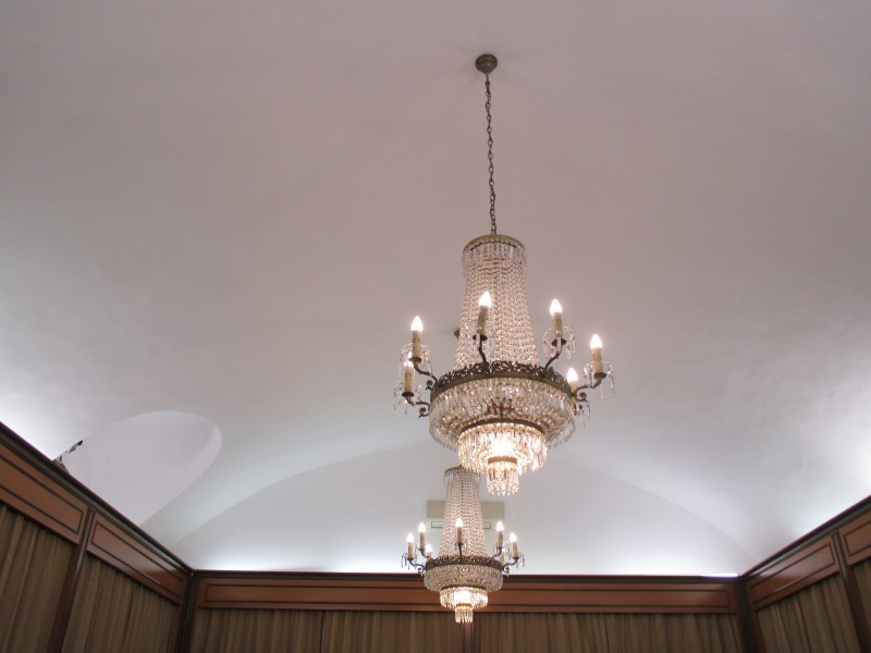 Abito in organza, di linea fasciante con corsetto drappeggiato e gonna a balze in pizzo rebrodè ricamato.